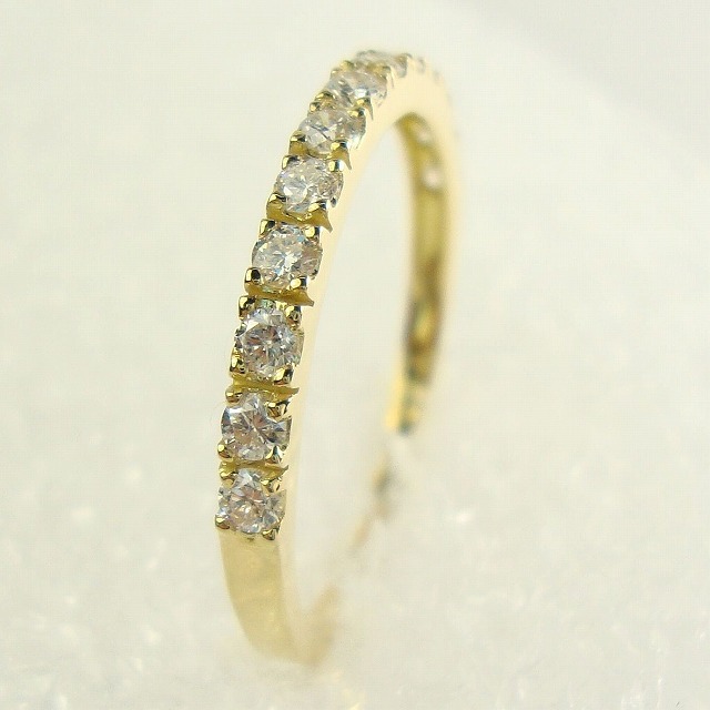 K18イエローゴールド ダイヤモンドのハーフエタニティリング 4本爪 ストレート