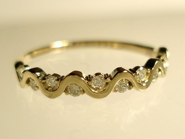 商品番号:1013g K18 イエローゴールド ダイヤモンドのハーフエタニティリング 共用爪 ウエーブ